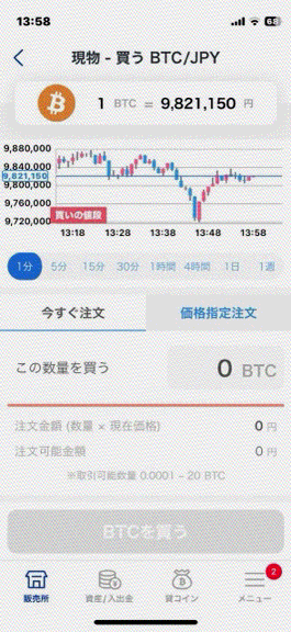 販売所の利用画面
