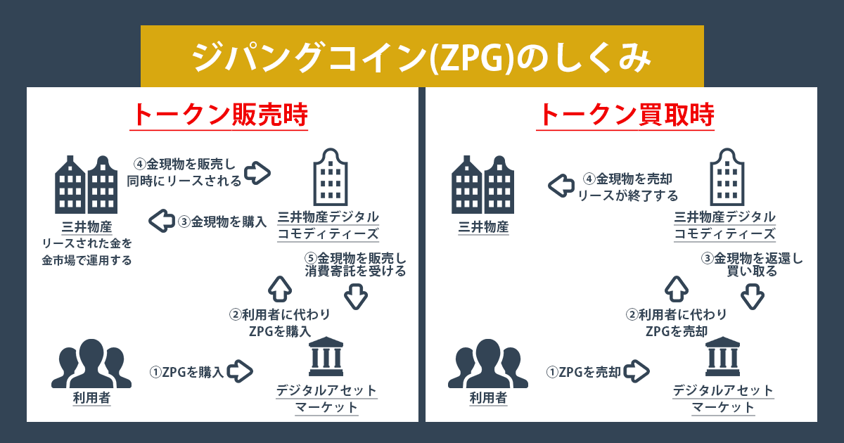 - ZPGは株式会社デジタルアセットマーケッツを介して各暗号資産取引所や投資家に販売されており、三井物産デジタルコモディティーズからの移動時には銀行による保証が行われています。