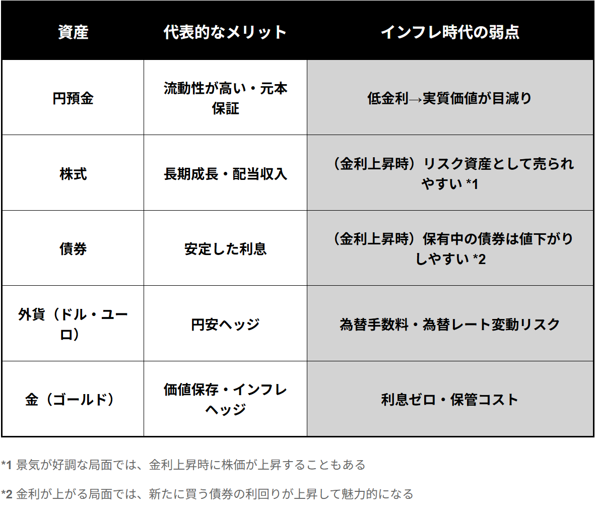投資信託・株式・外貨に加え、インフレと円安に強い資産をポートフォリオに組み込むことがカギとなります。