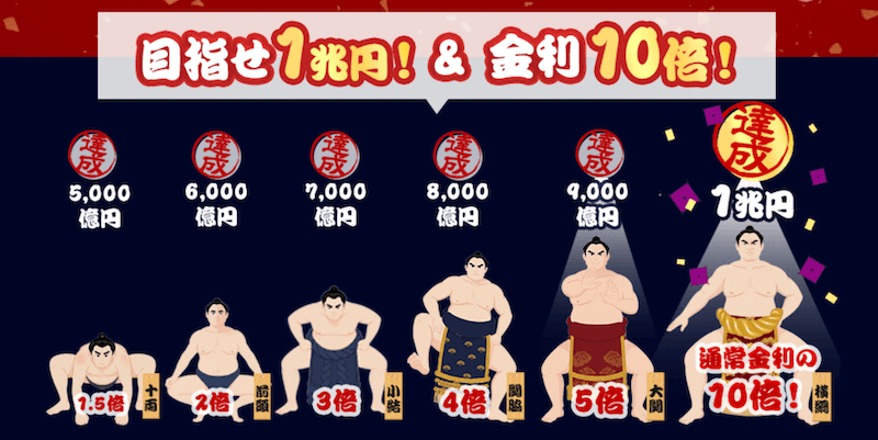 2026年1月9日時点で総残高1兆円を達成し、最大目標をクリア。これにより、特別金利は通常金利の10倍となる