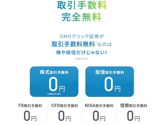 GMOクリック証券の大きなメリットとしてまず挙げられるのが、国内株式と投資信託の取引手数料が完全無料である点です。手数料を気にせずに取引できるため、少額から頻繁に取引を行いたい初心者はもちろん、デイトレードやスイングトレードを行う経験者にとってもコスト面で大きなメリットとなります。