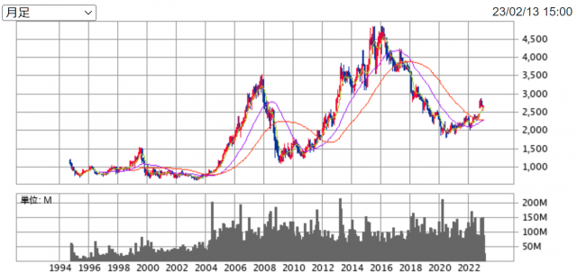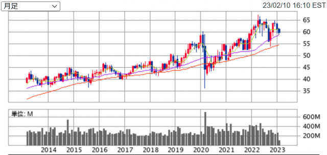 2023年2月までの期間における、株価と配当金の推移は以下の通りです。