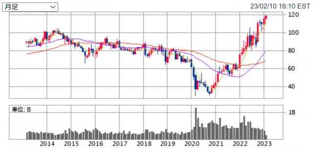 | 2022年度 | 135円(予想) |