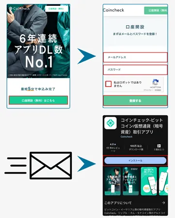 (コインチェックの場合)口座開設は、スマートフォンで完結できます。メールアドレス登録から本人確認まで、オンラインで数分で完了し、最短即日で取引を始めることが可能です。