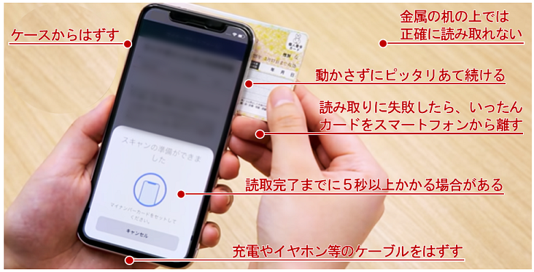 - かざして確認:マイナンバーカードをスマホで読み取り