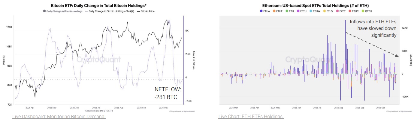 まず、米国のビットコイン(BTC)現物ETF(上場投資信託)は売り越しに転じ、7日間平均の流出額は281BTCと、4月以来の最低流入水準となった。ETF投資家は、過去1週間でビットコインETFを購入ではなく売却していることを示している。