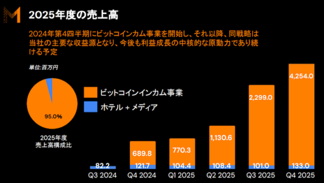 2025年度の売上高の構成比は以下の通り。ビットコインインカム事業の戦略は同社の主要な収益源であり、今後も利益成長の中核的な原動力であり続ける予定だとしている。