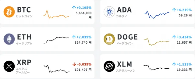 国内で初めて「USDC(ドル連動ステーブルコイン)」の取扱いを開始したほか、ソラナ(SOL)もいち早く導入するなど、新興プロジェクトへの対応実績が豊富です。また、ステーキング(保有で報酬型)・貸コイン(貸出で報酬型)・自動積立(定額購入型)といった複数の投資サービスも利用でき、投資スタイルに応じた選択肢がそろっています。