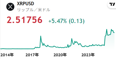 XRP/円 長期チャート- 現在価格:約400円(2.6ドル)