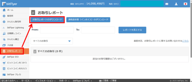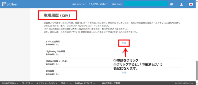 例として、以下は、bitflyerの場合のファイルダウンロード方法です。