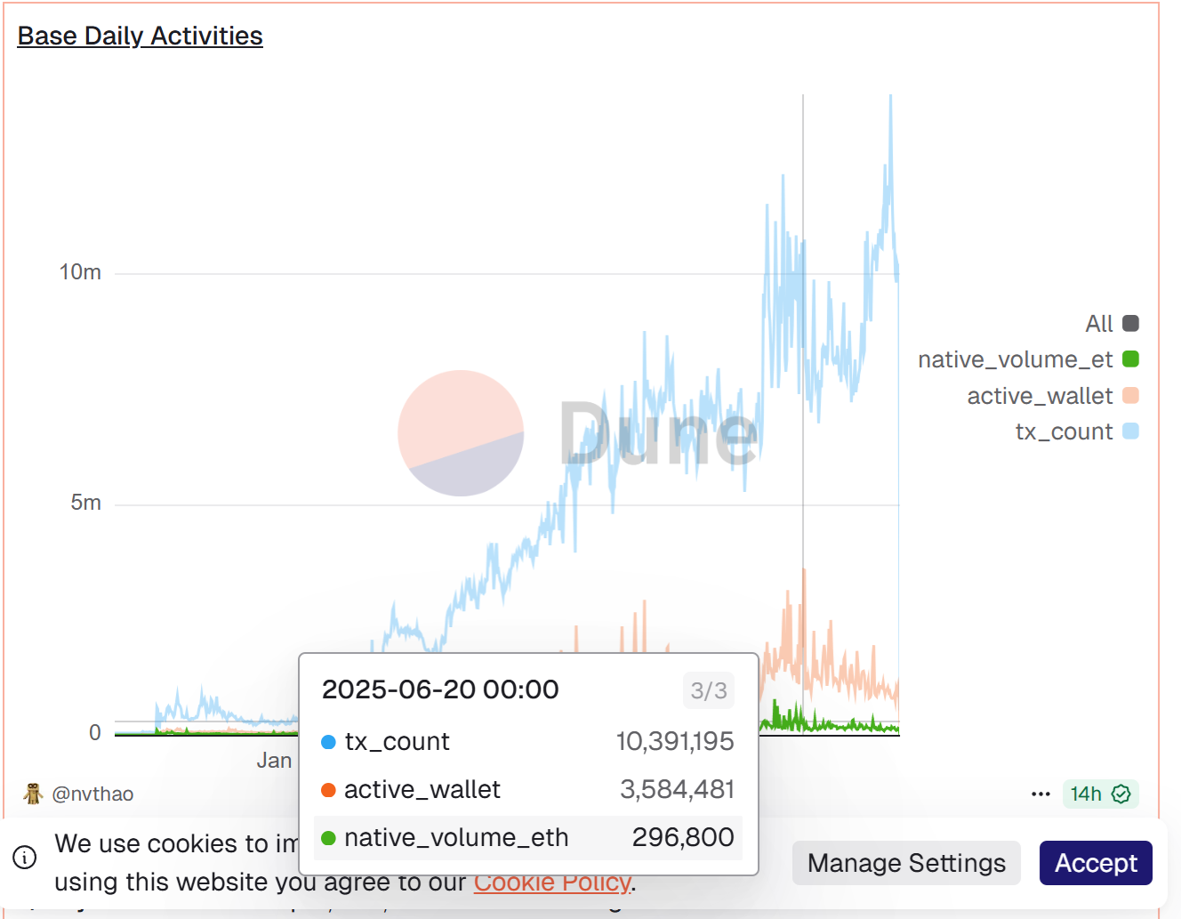 プロジェクト幹部による発言や、Baseの公式Xプロフィールでの「トークンを検討中」という記載など、状況が整いつつある中で、エアドロップ(無償配布)を期待するユーザー(投資家)のオンチェーン活動も活発化しています。