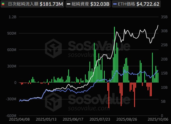 SoSoValueによると、米国のイーサリアム現物ETFには9月29日に、5.5億ドル(約840億円)の純流入があり、以来6日間連続で純流入の日が続いている。日次流入が5億ドルを超えるのは8月中旬以来の水準となった。