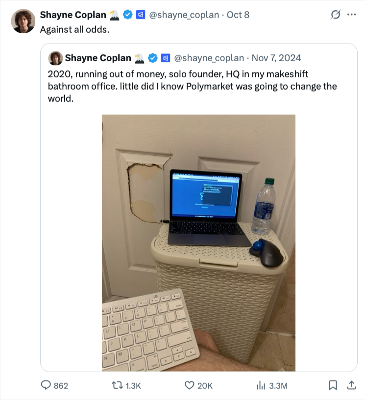 予測市場プラットフォーム大手「ポリマーケット」(Polymarket)の創業者シェイン・コプラン氏がXに注目を集めた投稿を行い、話題を呼んでいる。
