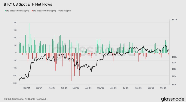 レポートは、ETFの流入が勢いを失っていることにも触れた。10日のビットコイン史上最大の清算イベントの後、米国の現物ETF投資家からも緩やかな売り圧力が見られ、今週はこれまで2,300 BTCが純流出している。