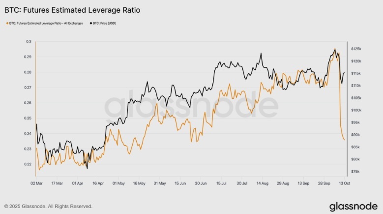 Glassnodeは、ビットコインの今回の下落は、現物売りではなく、主にレバレッジ圧縮によって引き起こされたようにみえると述べる。