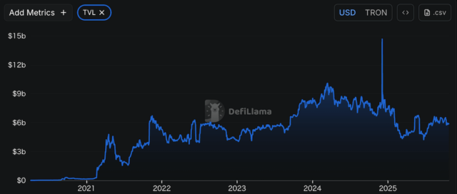送金インフラとしての地位を確立する一方で、トロン上ではDeFi(分散型金融)も成長している。トロンチェーンはTVL(預かり総資産)58億ドルを誇り、全ブロックチェーン5位に位置している。