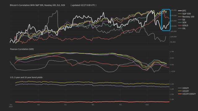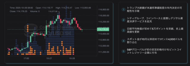 仮想通貨ビットコイン(BTC)10月半ばに急落したものの、日経平均株価が史上初の5万円を突破し、米国株式指数も3日連続で最高値を更新するなど、リスク資産への資金流入が強まる中で復調の兆しを見せている。