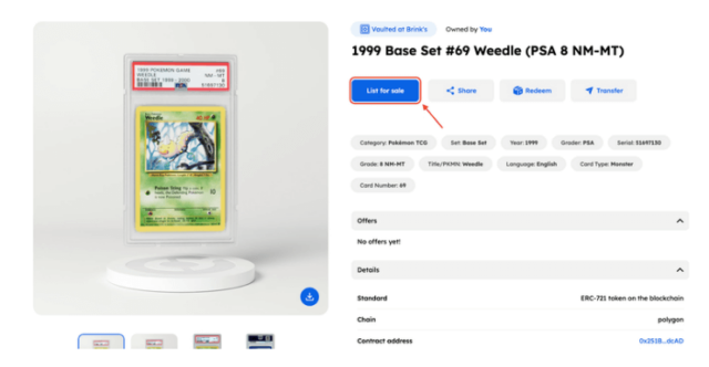 接続中のウォレットでトランザクションを承認すると、カードは出品状態になります。