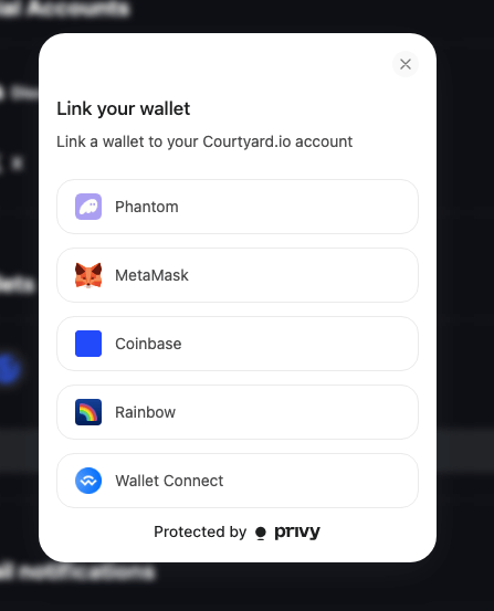 CourtYardは、NFTカードを購入・出品・保有するためにウォレット接続が必要です。 メタマスクなどのウォレットを使って接続します。