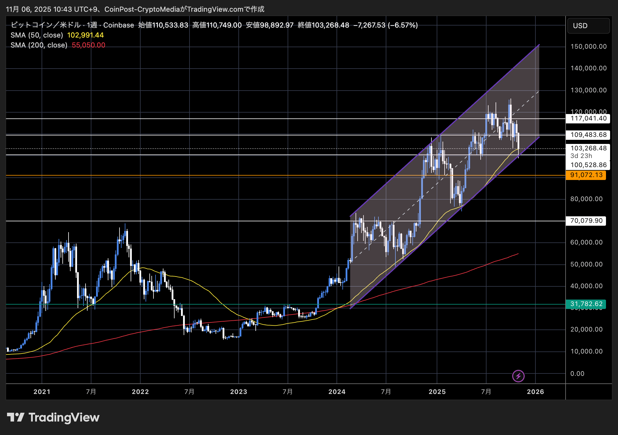 暗号資産(仮想通貨)市場では、ビットコイン(BTC)が前日比+2.1%の1BTC=102,900ドルとなった。