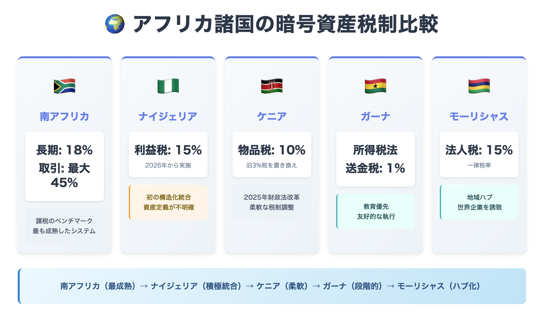 こうした急速な市場拡大を背景に、課税はアフリカのWeb3成熟度の真の試金石となっている。以下では、主要国の税制アプローチを詳しく見ていく。