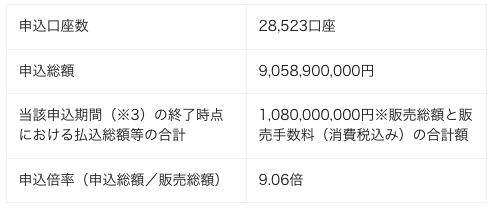 販売総額10億円に対して9.06倍の申込倍率となり、音楽ファン層を中心とした投資家の関心の高さがうかがえる。