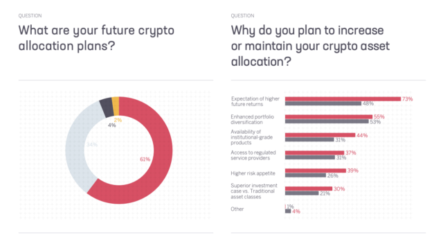 仮想通貨を「新しい代替資産クラス」とみなす割合は、28%まで減少していることから(一昨年44%、昨年31%)、多くの投資家にとって仮想通貨が主流の資産クラスとして定着しつつあるとシグナムは見ている。