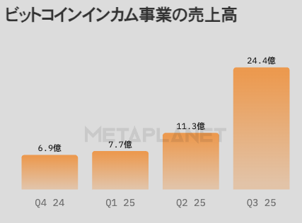 同社のビットコイン保有量は9月末時点で30,823BTCに到達し、2025年度の目標である3万BTCを前倒しで達成。ビットコインインカム事業は過去最高の売上高を記録した。
