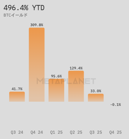 2025年に入り、同社は積極的な資金調達を実施。調達した資金をビットコイン購入に充てた結果、第3四半期だけで約1.7万BTC以上を追加取得した。年初来のBTCイールド(1株当たりBTC保有量の成長率)は496.4%に達している。