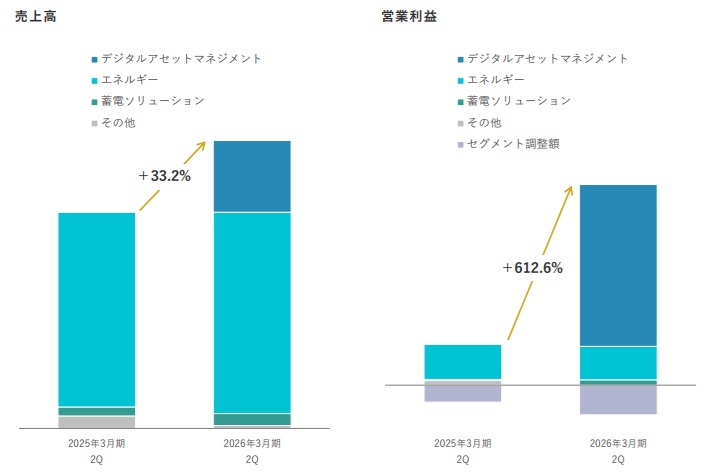 株式会社リミックスポイントは14日、2026年3月期第2四半期(2025年4~9月期)の決算を発表。前年同期と比較し、売上高・営業利益ともに大幅増を達成している。特に、デジタルアセットマネジメント事業が約37億4,700万円の売上高を計上した。