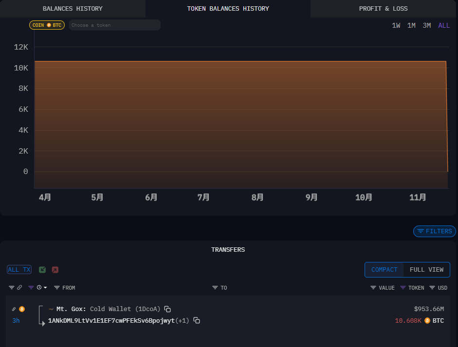 2014年に経営破綻した暗号資産(仮想通貨)取引所マウントゴックスが18日、ビットコイン約1万608BTC(約1,470億円相当)を移動する動きが観測された。