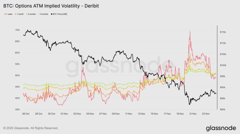 また、インプライドボラティリティ(トレーダーが織り込んでいる今後の価格変動)も上昇しており、12月の満期に向けて市場がボラティリティ(価格変動)に備えようとしていることが示唆される。