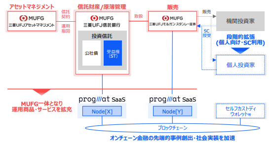 三菱UFJアセットマネジメント、三菱UFJモルガン・スタンレー証券、三菱UFJ信託銀行の3社は4日、Progmat(プログマ)との協業を発表した。