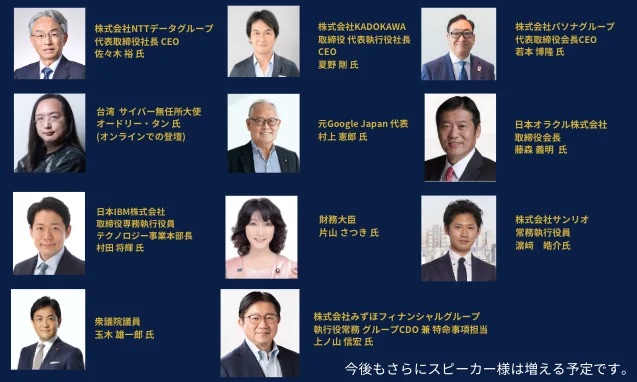 ビジネス・政治・学術の各界を代表するスピーカーが登壇します 。