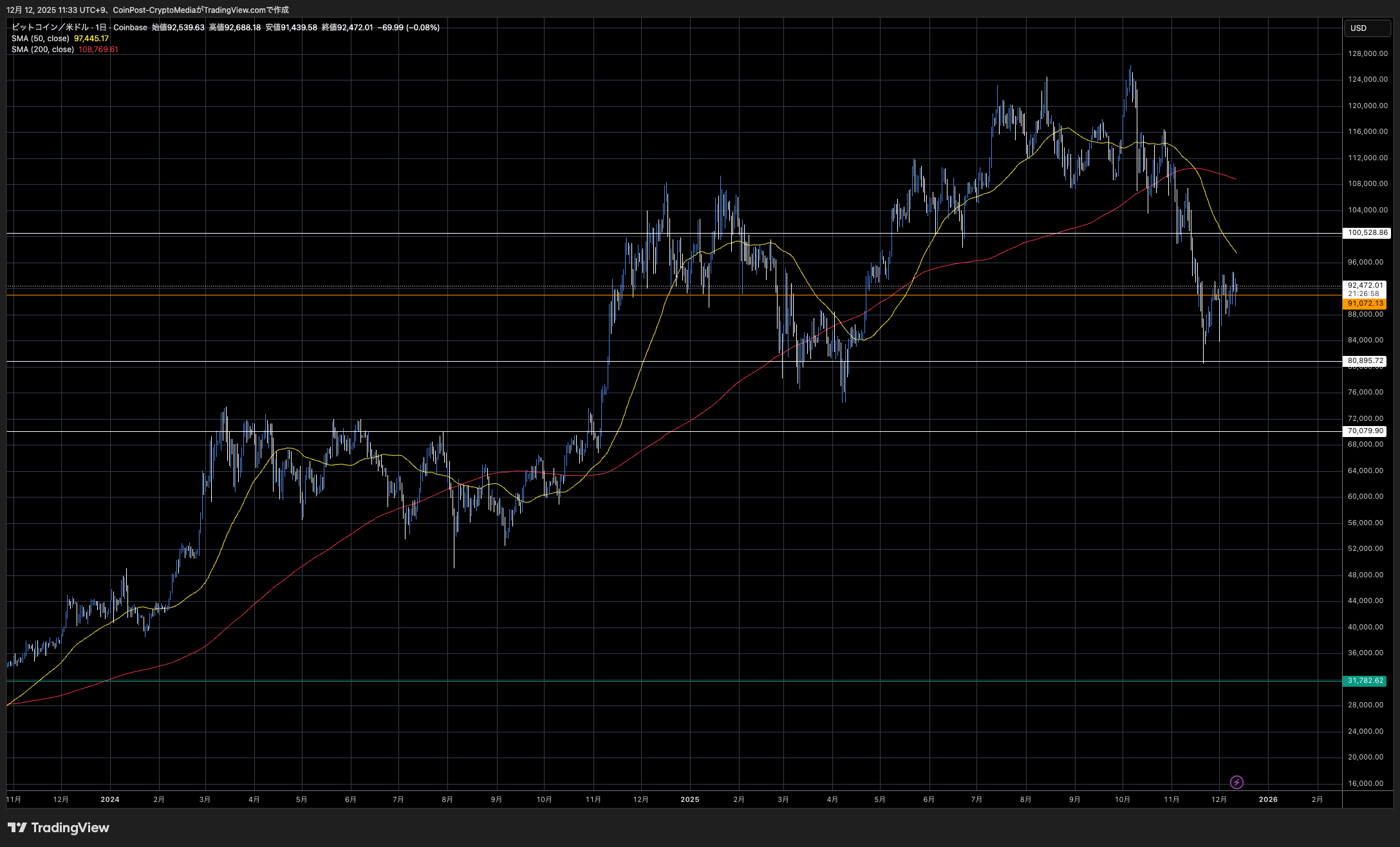 米連邦公開市場委員会(FOMC)後に下落し、一時9万ドルを割り込んだが、米国時間にかけて反発した。