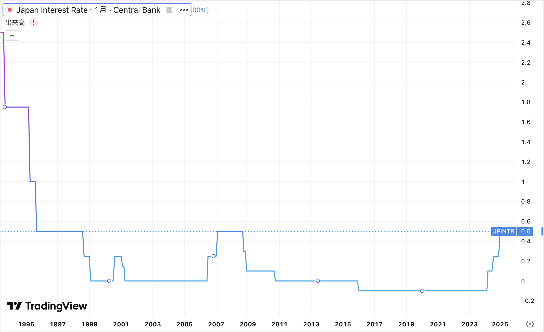 今年1月に0.25%から0.5%への利上げを実施して以来、7会合連続で据え置いてきた日銀だが、インフレ圧力と円安懸念から金融正常化を再開する。2025年の年間利上げ幅は合計0.5%となり、35年ぶりの大きさとなる。