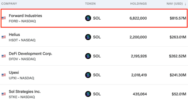 なお、「The Block」のデータによれば、フォワード・インダストリーズは上場企業の中で最も多くのソラナを保有している。保有数量は約682万SOL(1,270億円相当)で、以下のデータの通り、2位以下に大きな差をつけている。