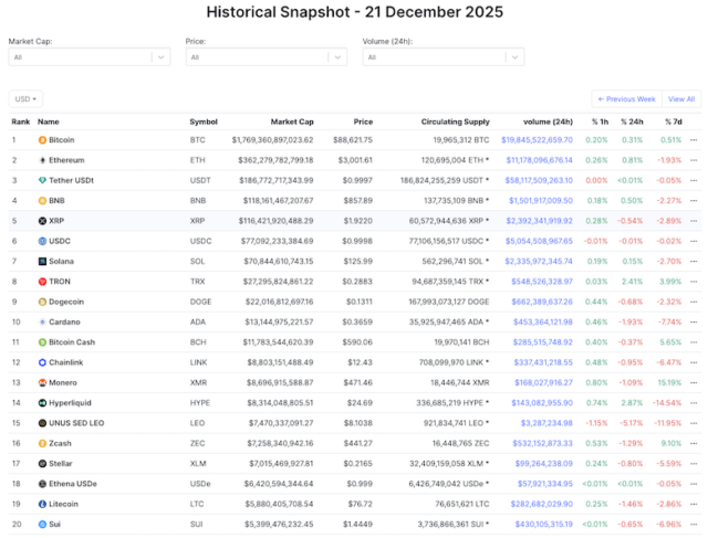 表記順:通貨名(ティッカー):(前年順位→順位)