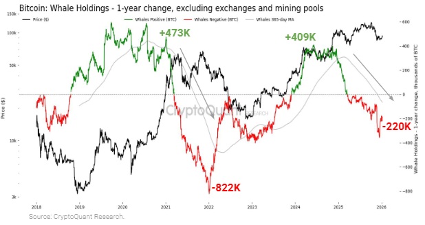 これは、2023年初頭以来の最大の保有量減少だ。同様の状況は2021年から2022年の弱気サイクルでも発生していた。