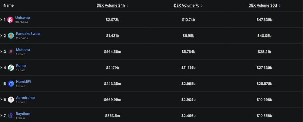 DefiLlamaによると(2026年1月時点)、ユニスワップはDEXの中で最もTVL(預かり総資産)が高く、30日間の取引高ではトップの約470億ドルを誇ります。数あるDEXの中で、なぜユニスワップが多くのユーザーに選ばれているのでしょうか。