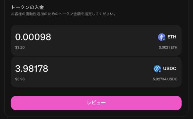 カードに表示されている TVL と「選択率」 を見ると、「いま実際にどの手数料帯が使われているか(手数料が入りやすい場所)」が分かります。初心者の方は、まずは「デフォルトで表示される手数料プール」を選べばOKです。