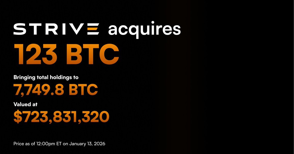 ストライブは1月1日から12日の間に、平均価格1ビットコイン当たり91,561ドルで123ビットコインを追加購入した。手数料と経費を含む総購入額は1,126万4,000ドルで、保有総数は7749.8ビットコインとなった。