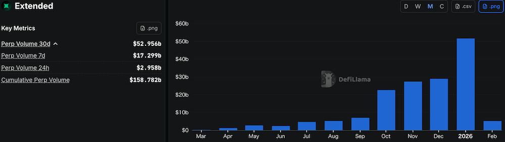Extendedは、元Revolut(欧州発のネオバンクで、世界的に利用されているデジタル銀行)出身のチームによって開発されたPerp DEXです。2025年8月にスタークネット上で開始され、現在は仮想通貨および一部のTradFi資産(ドル/ユーロ、金、S&P500、原油などの伝統的資産)を対象に、USDCを担保とした最大100倍のレバレッジ取引を提供しています。
