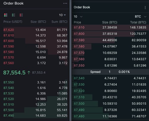 ヤン氏が共有したスクリーンショットによると、ハイパーリキッドのビットコイン(BTC)永久先物契約のスプレッドは1ドルで、バイナンスの約5.5ドルよりも低い。また、ハイパーリキッドの累計アスクサイズは140BTCに達し、バイナンスの80BTCを上回っている。