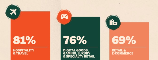 今回の調査によると、業界別ではホスピタリティ・旅行の導入率が81%と最も高く、次にデジタルグッズ・ゲームや高級品・専門小売の76%が続いた。小売・Eコマースは69%だった。