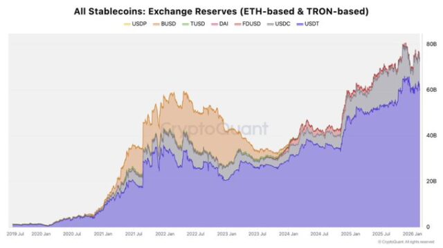 仮想通貨市場のオンチェーン分析を行うCryptoQuantは17日、中央集権型取引所(CEX)におけるステーブルコインの在庫状況に関する最新の報告を公開した。
