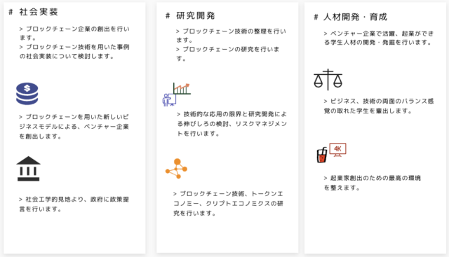 同講座は「社会実装」「研究開発」「人材開発・育成」の3つを活動の柱に掲げており、ブロックチェーン企業の創出や政策提言、計算機科学・暗号学・経済学などの分野横断的な研究、起業家人材の輩出に取り組んでいる。今回の応用実践プログラムは、こうした活動基盤の上に設計された教育課程となる。