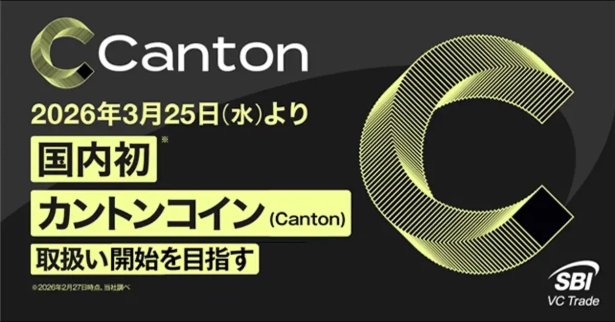 SBI VCトレード株式会社は2月27日、金融機関向けブロックチェーンCanton Networkのネイティブトークンである仮想通貨カントン(CCトークン)を、同年3月25日より国内で初めて取り扱うと発表した。