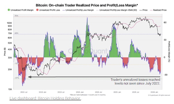 さらに、トレーダーの含み損は、2022年7月以来の最高水準に到達。その後、トレーダーや長期保有者からの売り圧力は低下している。価格がすでに低迷しており、トレーダーがさらに売却を行うインセンティブがなくなったためとみられる。