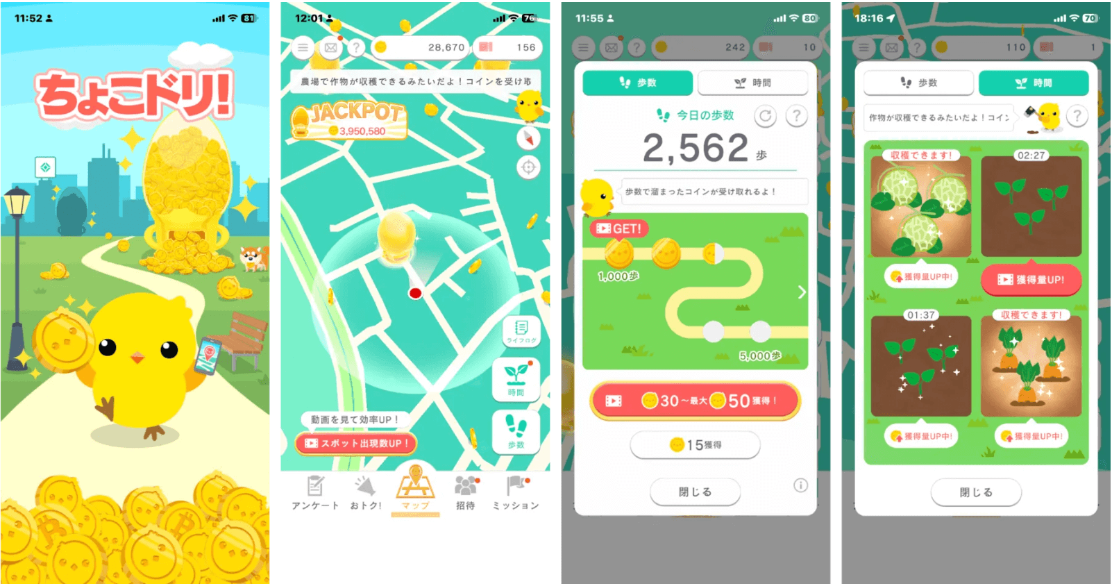 さらに、ミッション達成報酬や、移動しなくてもコインが増える「農場」システムも用意されており、ライフスタイルに合わせて隙間時間でこつこつとコインを積み上げられる設計となっています。